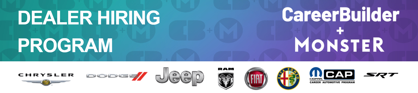 Fiat Chrysler Automobiles, in partnership with CareerBuilder+Monster, has developed the Dealer Hiring Program to help dealers find qualified candidates for all areas of your dealership. The program has been enhanced to offer you additional exposure, new resources and more personalized service.